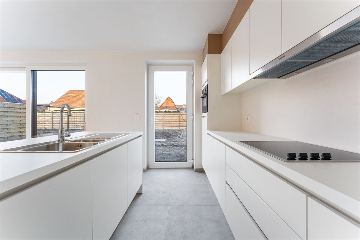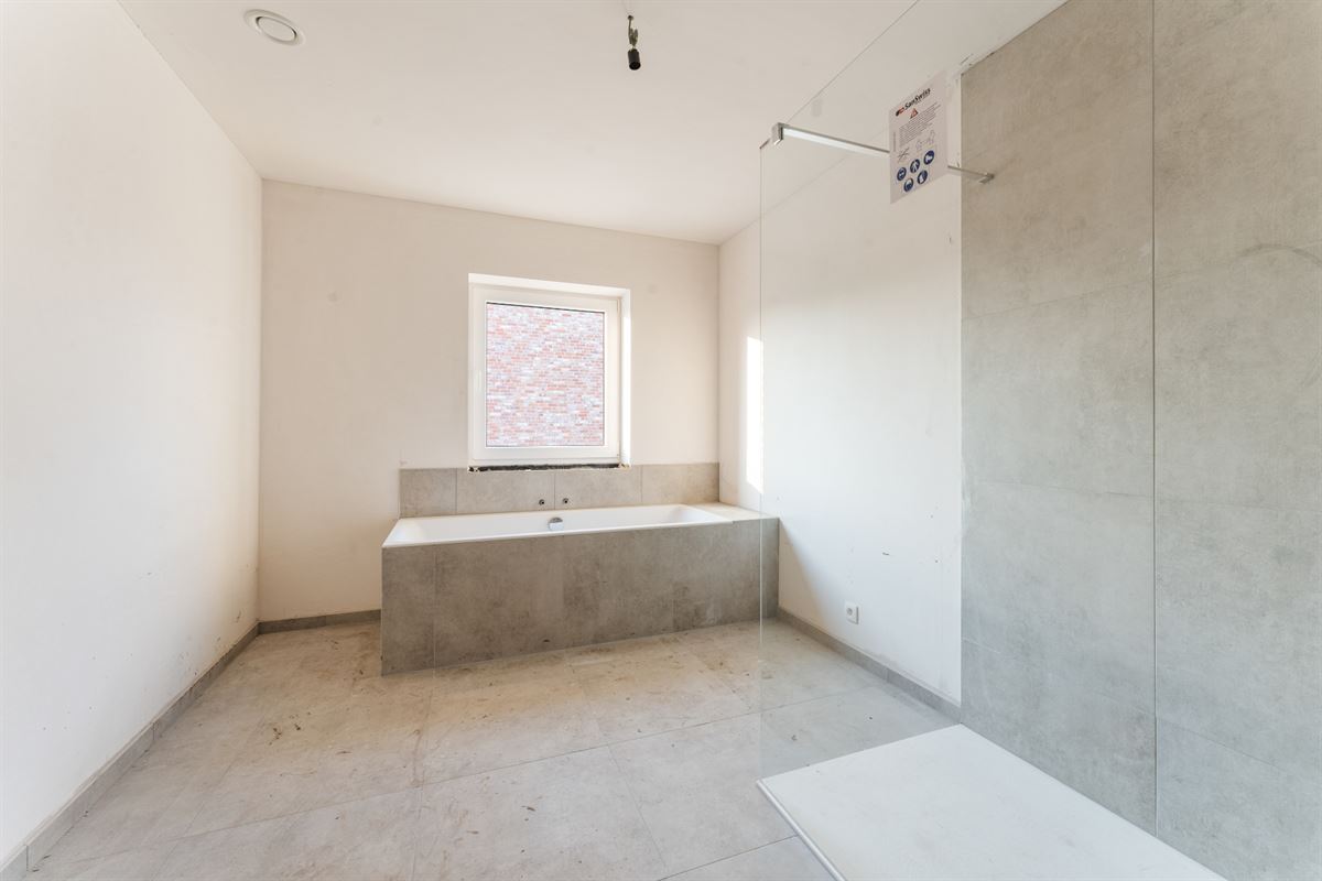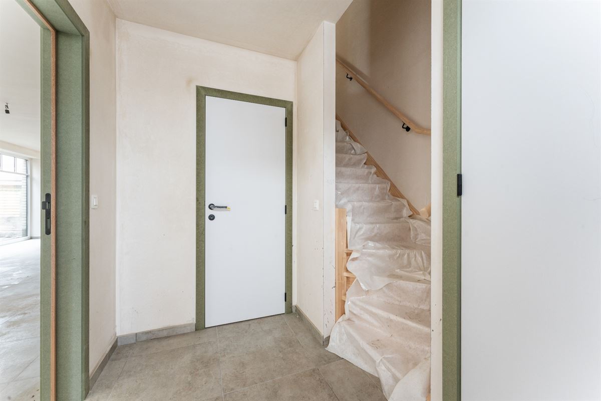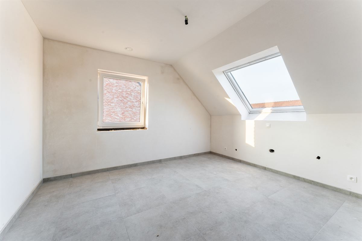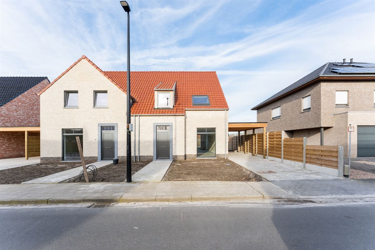 Uiterst functionele indeling als volgt: inkomhal met gastentoilet en vestiaire, lichtrijke leefruimte bestaande uit eetplaats, zithoek en open keuken met eiland voorzien van alle hedendaags comfort, aansluitend is een praktische berging/wasplaats voorzien. Op de eerste verdieping bevinden zich de nachthal, apart toilet, 3 ruime slaapkamers en een badkamer. Zolder toegankelijk via zolderluik. Tuin met terras, carport. Oplevering in maart 2024. *Aankoop onder 6% BTW onder bepaalde voorwaarden.