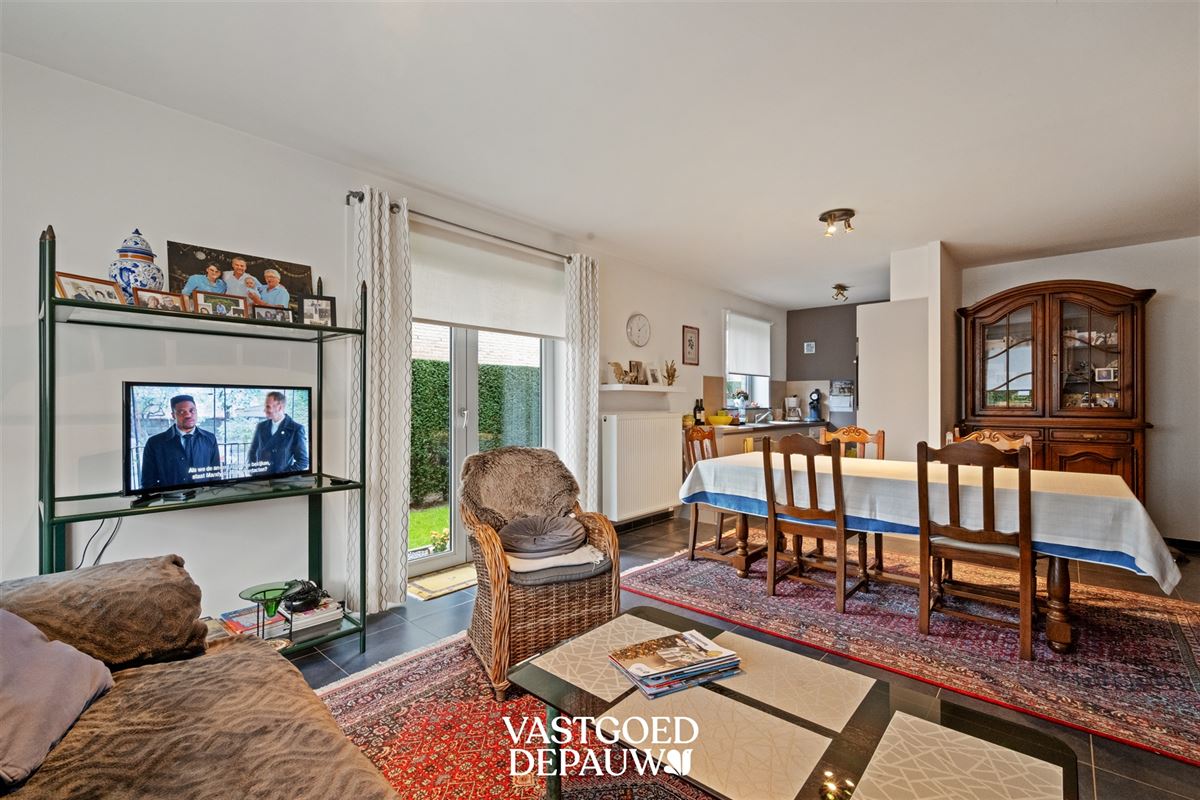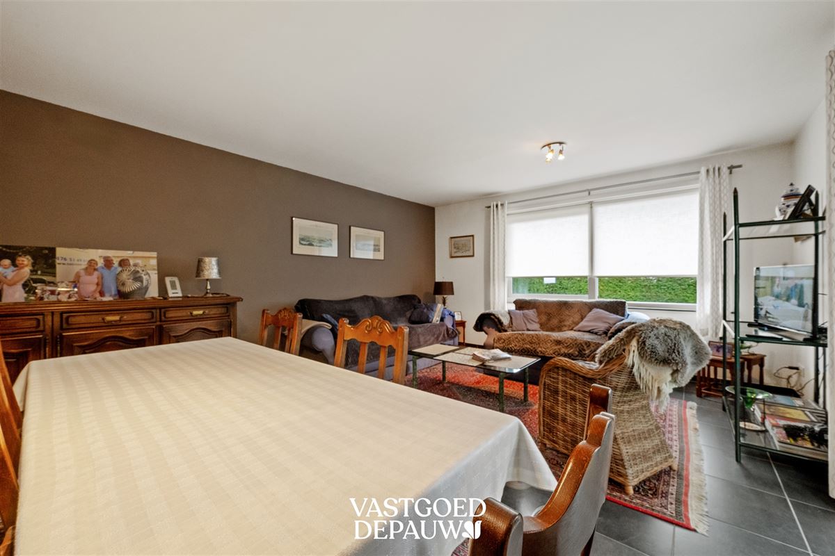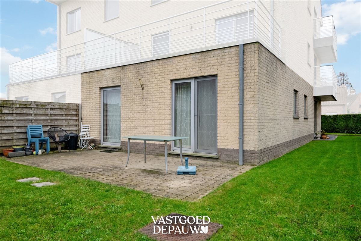 Dit ruim en hedendaags gelijkvloers hoekappartement geniet van een rustige ligging in centrum Oostkamp, dichtbij winkels, eetgelegenheden en belangrijke invalswegen. Er is een praktische indeling als volgt: inkomhal met gastentoilet en vestiaire, open leefruimte die bestaat uit een gezellige zithoek, eethoek en open keuken die uitkijkt op het terras en groen. Er is een praktische berging/wasplaats, 2 volwaardige slaapkamers met zicht op het achterliggende ruime terras met tuin. Mooie en lichtrijke badkamer. Bij het appartement hoort een garagebox die te koop wordt aangeboden voor €35 000, gelegen vlak naast de residentie op het gelijkvloers.