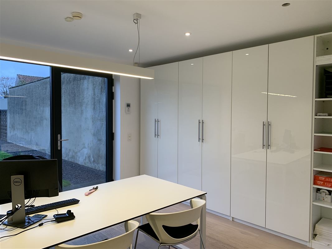 Recent handelspand op een commerciële ligging in de Steenbrugsestraat te Loppem, een weg met veel passage en uitstekende zichtbaarheid. De gevelbreedte van maar liefst 8,55 m zorgt voor een optimale visibiliteit. Het pand is momenteel ingericht als kantoor, maar leent zich ook perfect voor diverse commerciële activiteiten of als praktijkruimte. De indeling omvat een inkomhal met wachtruimte, een apart loket en een centrale ruimte die toegang biedt tot twee afzonderlijke burelen. Verder is er een kitchenette uitgerust met kasten en koelkast, met aansluitend een berging. Daarnaast is er een extra berging met douchecel en een apart toilet aanwezig. De twee ruime burelen genieten van veel natuurlijk licht en geven uit op de privatieve tuin. Aan de tuinzijde bevindt zich de privatieve parking met plaats voor vier wagens. Het handelspand heeft een totale oppervlakte van 129m² en is afgewerkt met hoogwaardige materialen, waaronder parketvloeren, antivandalisme beglazing, maatwerk kasten en onzichtbare deuren. Uiterst energiezuinig: EPC-label A. Beschikbaar vanaf 1 april 2026. Interesse? Contacteer ons via info@vastgoed-depauw.be voor uw bezoek!