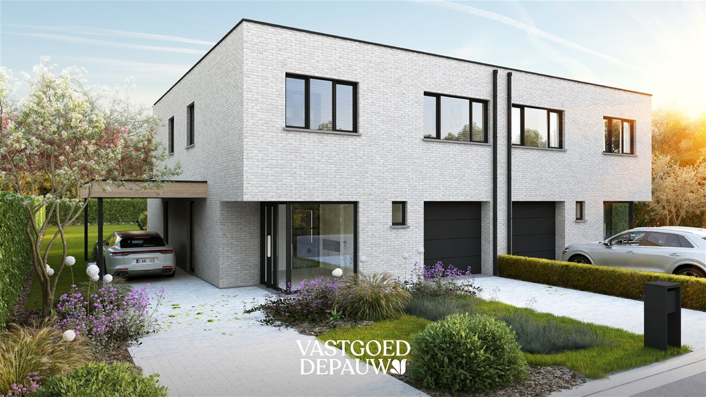 Bij het binnenkomen via de inkomhal krijg je toegang tot het gastentoilet en de lichtrijke leefruimte. De ruime woonkamer met open keuken baadt in het licht dankzij grote raampartijen met zicht op de tuin. Aansluitend is er een praktische berging en een inpandige garage met sectionale poort. Extra troef: naast de woning is een carport voorzien voor een tweede wagen. De eerste verdieping biedt een ruime nachthal die toegang geeft tot drie volwaardige slaapkamers, een apart toilet, een stijlvolle badkamer, een bureau en een extra berging. De master bedroom beschikt bovendien over een aansluitende dressing.